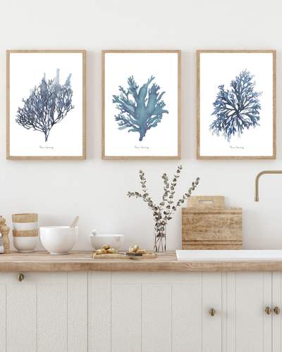 Blue Seaweed Watercolour Print - 3 Piece Set