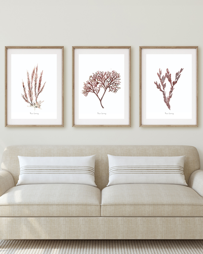 Beautiful corals, seaweeds and shell prints add a lovely touch to a beach retreat, house, or nostalgic spot reminicent of days by the ocean or rockpool searching.